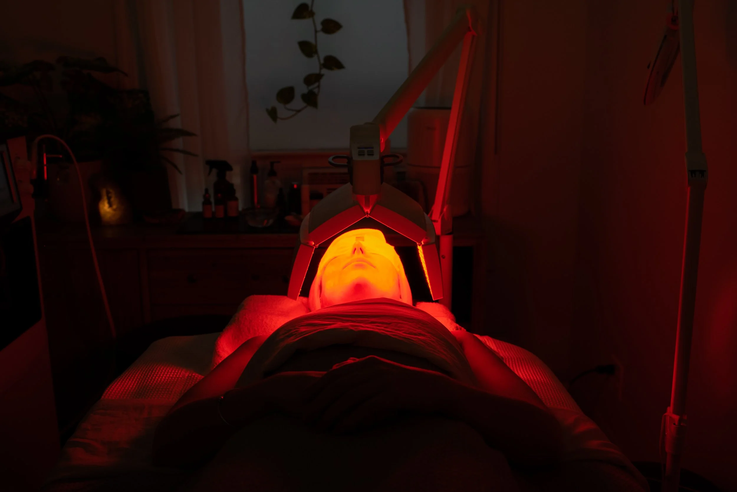 The experience includes a therapeutic double cleanse, lymphatic brushing to encourage circulation and reduce stagnation, and intentional facial massage to soften tension and support natural renewal. A mild botanical exfoliation may be incorporated as needed, with extractions kept minimal to preserve skin integrity. LED light therapy and vibrational skin wands are used to promote circulation and vitality, leaving the skin calm, supported, and visibly refreshed.